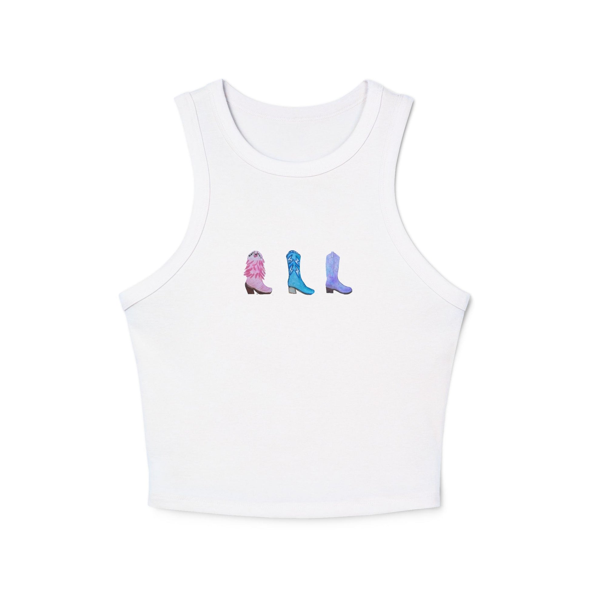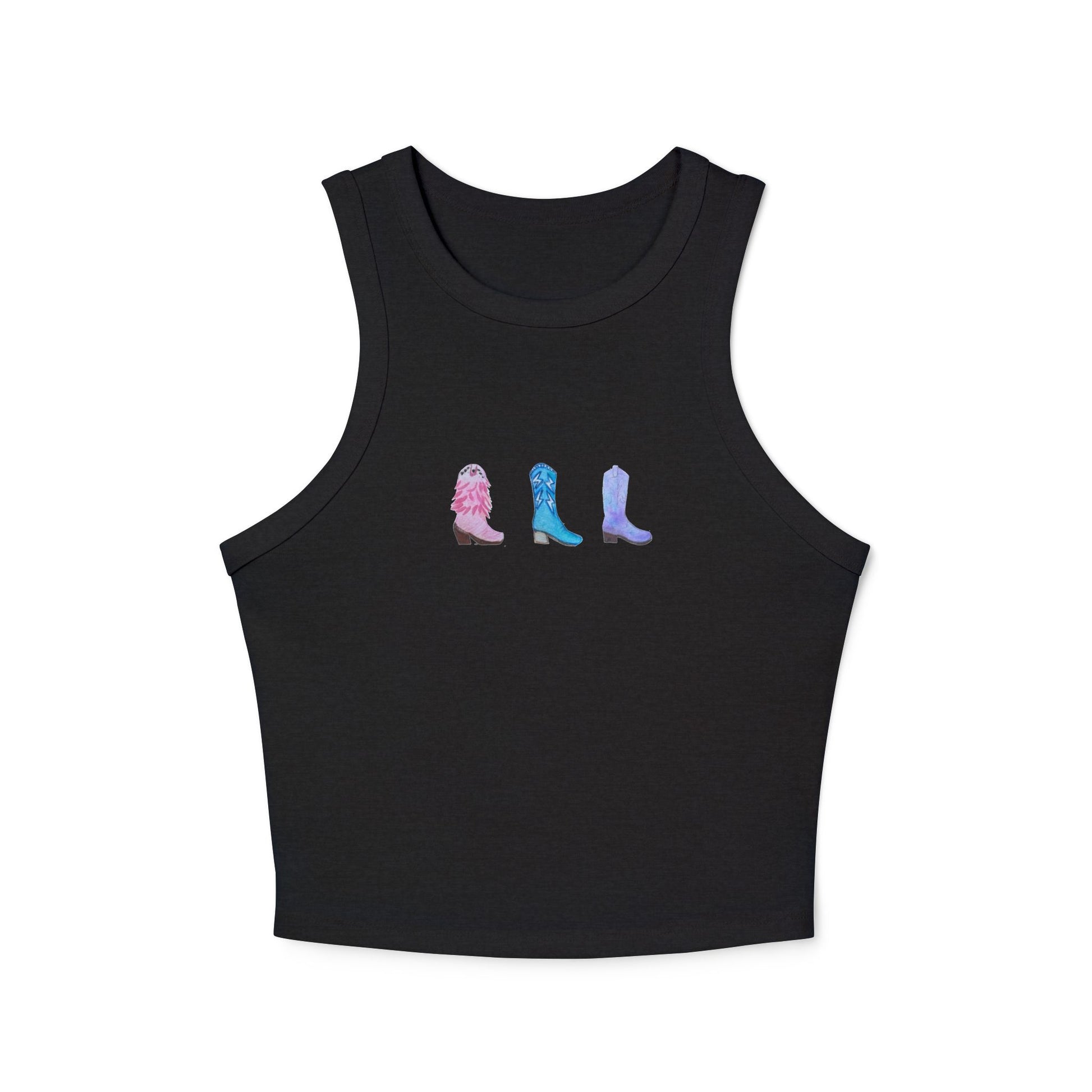 Printed on a buttery-soft, fitted racerback tank with a sleek high neckline, it's perfect for late nights out, early morning drive-thrus, and everything in between. Wear it when you're one boot shy of a good idea — or three boots deep into a bad one.